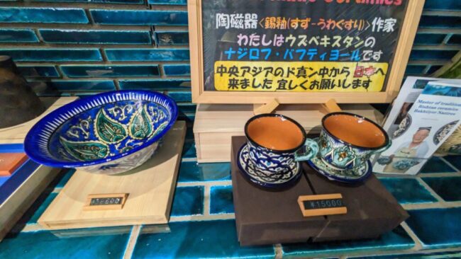 西ゲートにはお土産屋が密集していて、それが珍しく、つい立ち寄ってしまった。そのあとウズベキスタン館に1時間並んで入れた頃には、すでに14時を回っていた。