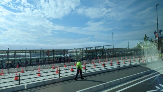 毎回、夢洲駅までは満員電車で立ったまま行っていた。それがしんどくて、今回は新大阪駅から出ているシャトルバスを予約してみた。