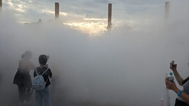 中心に行くと霧で涼める。