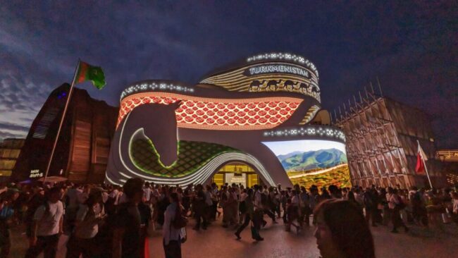 来る度に電飾の明るさが桁違いのかわいいトルクメニスタン館の写真を撮ってしまう。この外観が大好きだ。