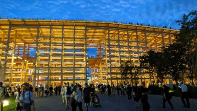 前回、電力館に入った時に、海外のパビリオンより、日本のシグネチャーパビリオンの方が造りが凝っていてエンタメ的には楽しいことに気付いた。この落合洋一のNull2館も外観が未来を感じさせるのにふさわしく、入ってみたい。日本のシグネチャーパビリオンはどこも完全予約制で入れないのだ。