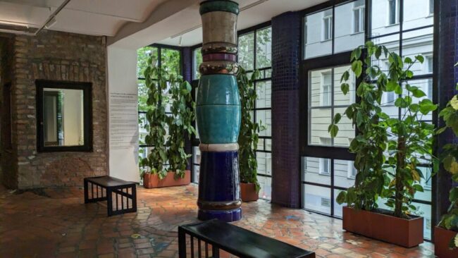 オーストリアの芸術家、建築家で、環境保護活動家。彼の絵画やグラフィック、設計図などが展示されている。