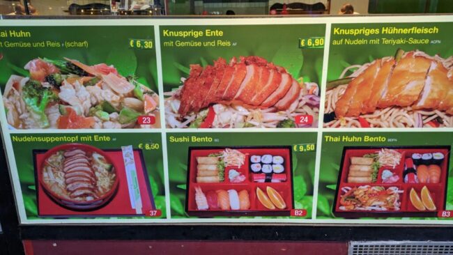 頼んだのは、焼きそばの上にエビフライが乗った一皿。なんとも変わった組み合わせだ。オーストリアは通貨がユーロなので計算が簡単なのもありがたい。ピンボケ。焼きそば9.4€(1,500円)って、日本じゃあり得ない高さだけど。
